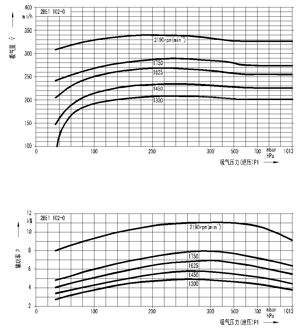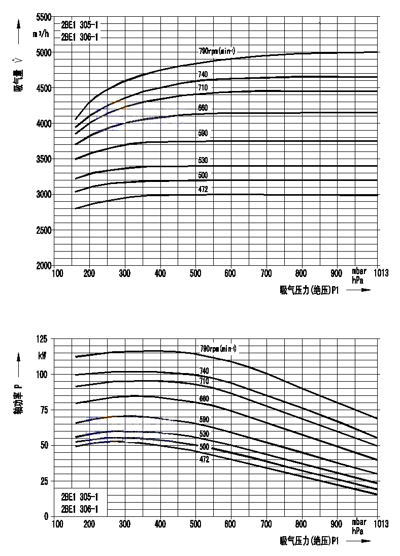 注:以上所选电机功率可在大多工况下工作。如排气口压力较高(0.02~0.05MPa),则应相应加大电机功率;如2BEA真空泵正常工作时轴功率较小,也可选用接近轴功率的电机功率,如此更为节能。 注:水环真空泵的水温对其性能影响较大,而水环真空泵的性能曲线均为在15℃的水温条件下测得,因此在实际选用水环真空泵时应对水环真空泵的抽气速率进行修正。修正方法请参照:水温对水环真空泵性能的影响 |